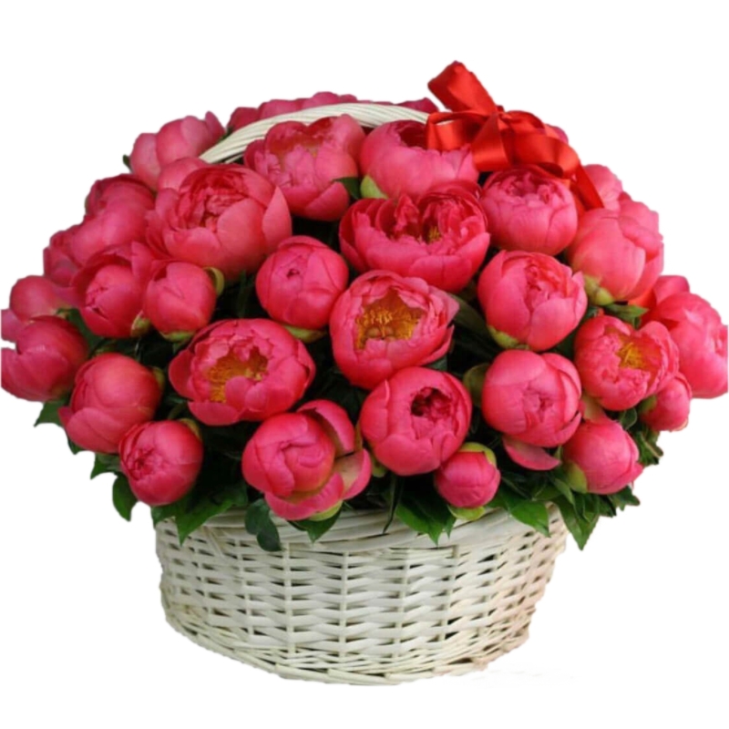 Букет из 51 красного пиона в корзине