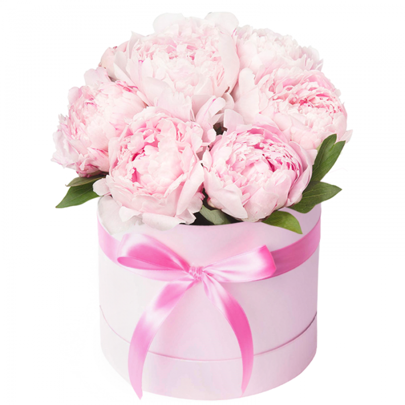 Розовые пионы в коробке