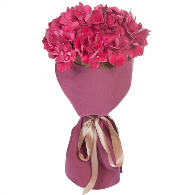 Букет состоит из 1 красная гортензия, красивая упаковка, атласная лента.