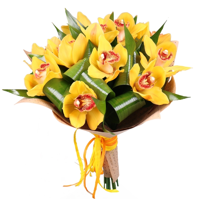 Букет из желтых орхидей в крафте