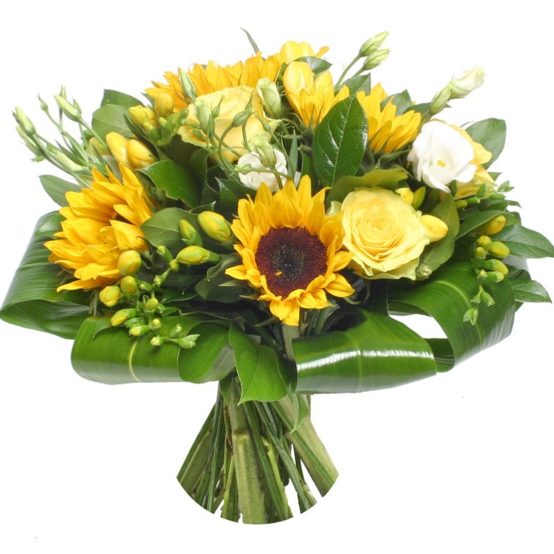 Подсолнух, Роза, Фрезия, Эустома |