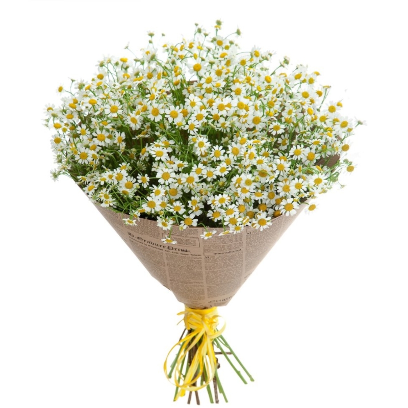 Букет состоит из 21 ветка танацетума, крафт, атласная лента.