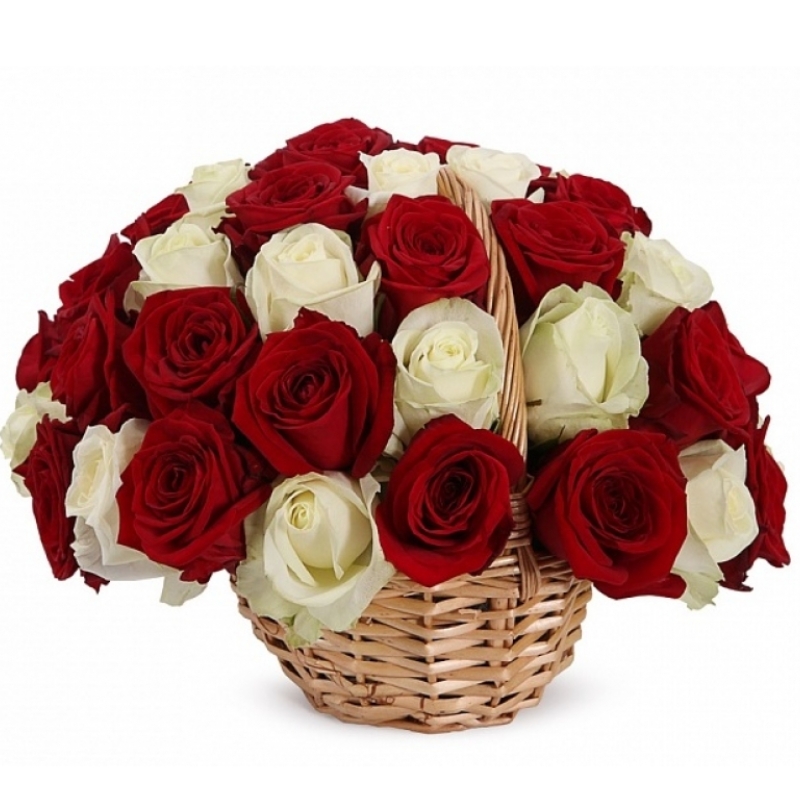Корзина из 35 белых и красных роз