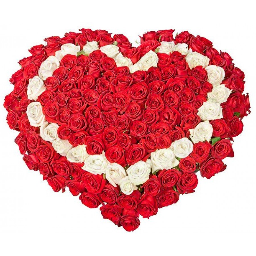 Композиция из роз "Влюбленные сердца" 151 шт.
