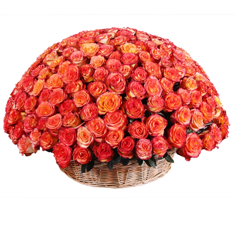 Букет состоит из 201 роза High Magic, зелень, корзина, оазис.