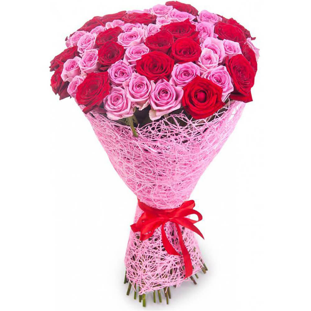 Букет из 55 красных и розовых роз