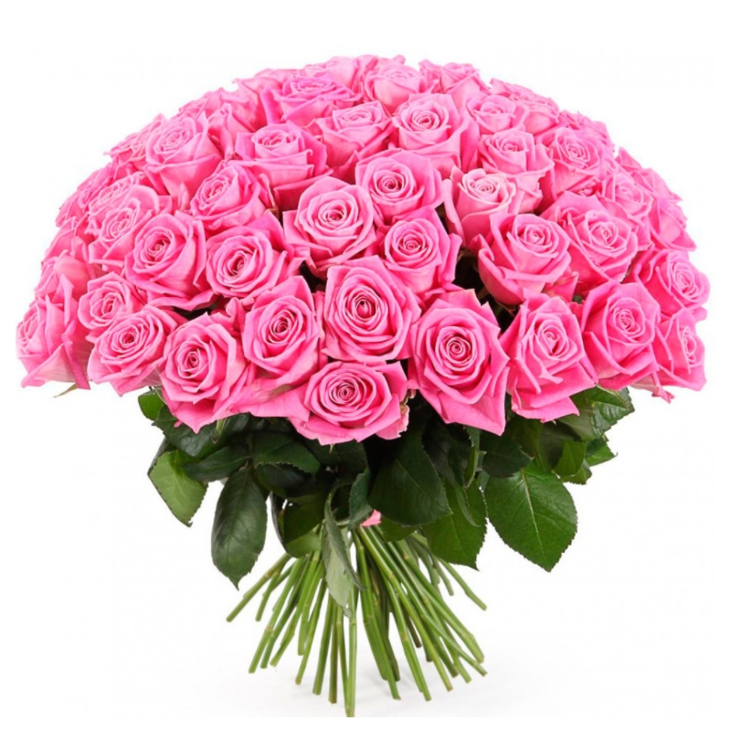 Букет состоит из 101 розовая роза, прозрачная упаковка, атласная лента.