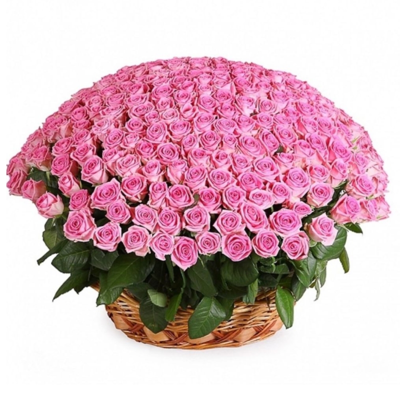 Букет состоит из 201 розовая роза, зелень, корзина, оазис.