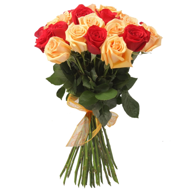 Букет из 19 красных и кремовых роз