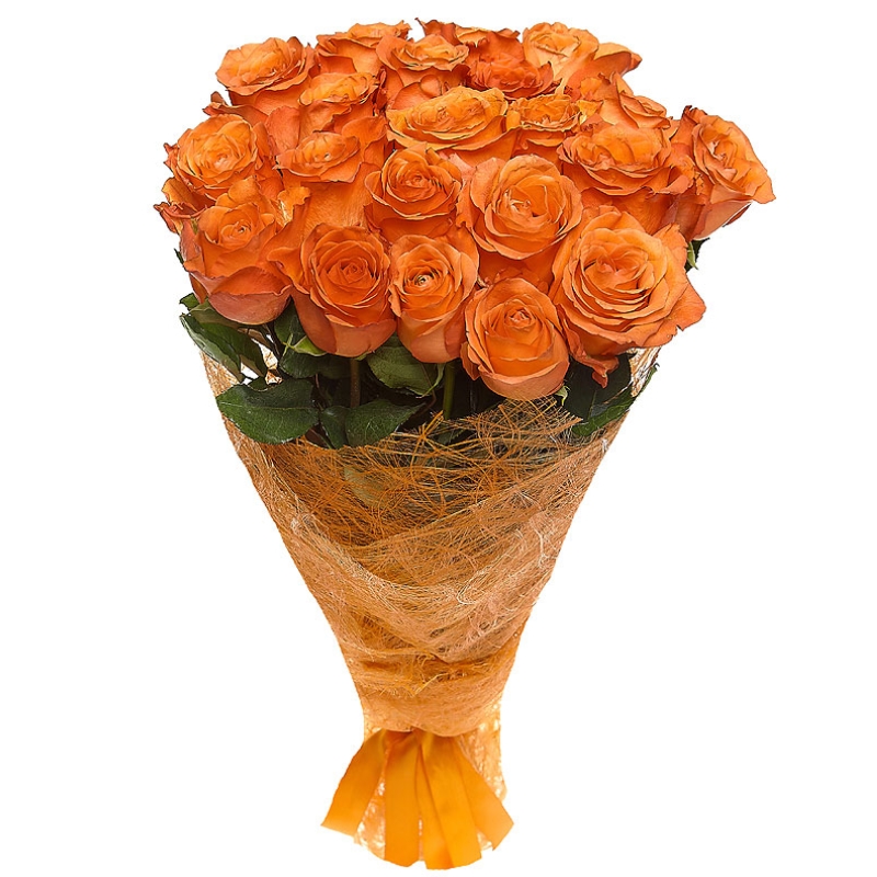 Букет состоит из 31 оранжевая роза, красивая упаковка, атласная лента.