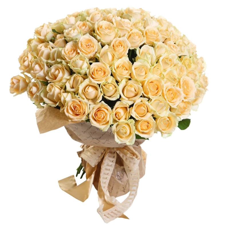 Букет из 101 кремовой розы в крафте