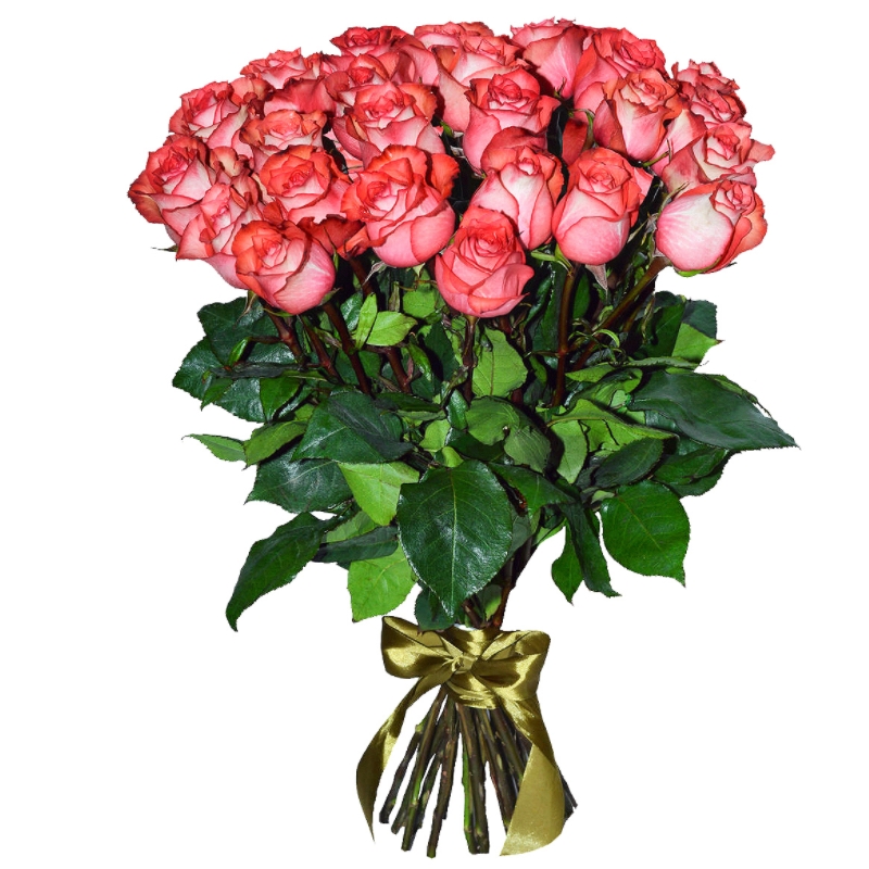 Букет состоит из 31 розовая роза, прозрачная упаковка, атласная лента.